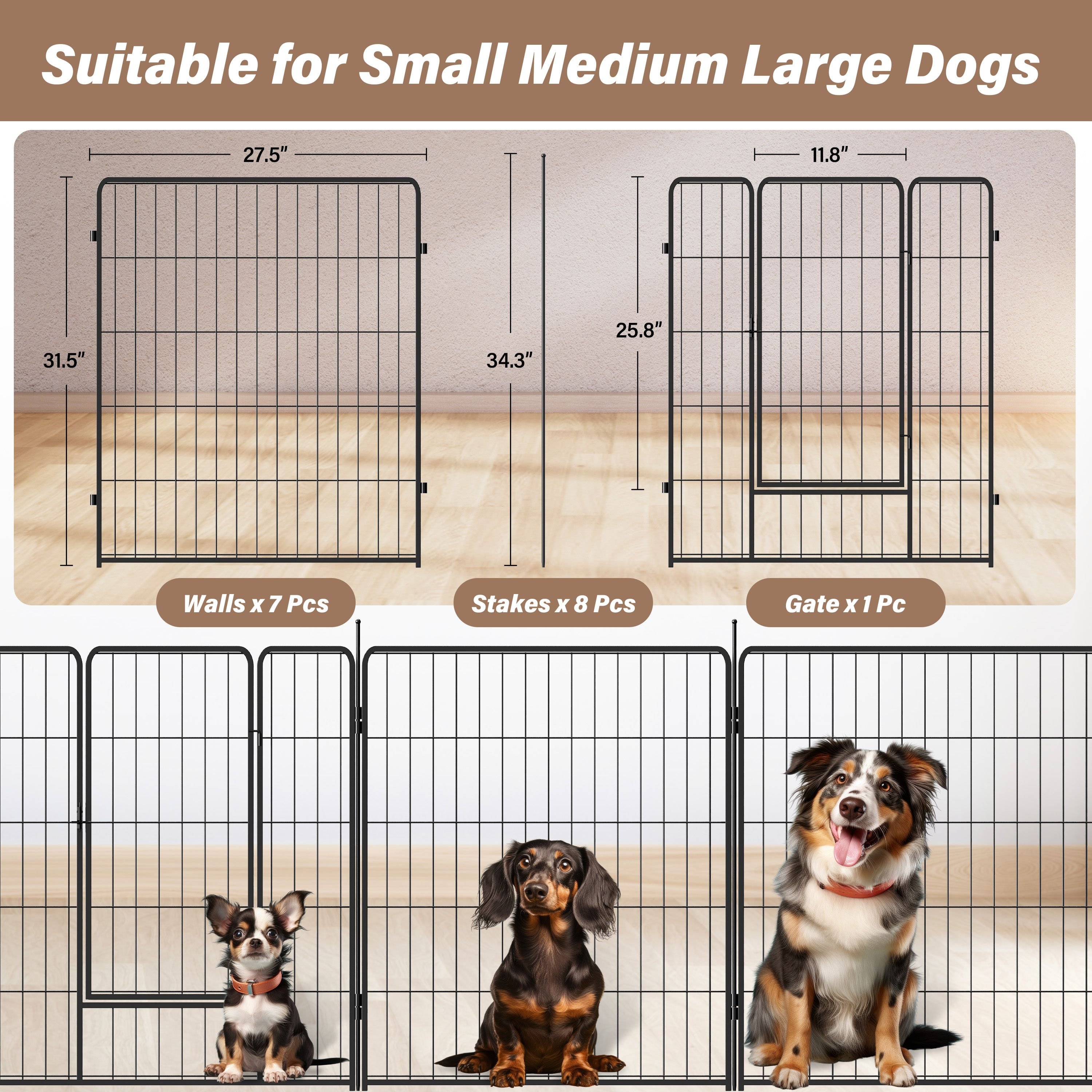 Dog Playpen Indoor Outdoor, 32" Height 8 Panels Fence with Anti-Rust Coating, Metal Heavy Portable Foldable Dog Pen for Large