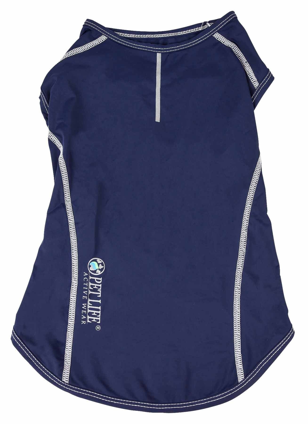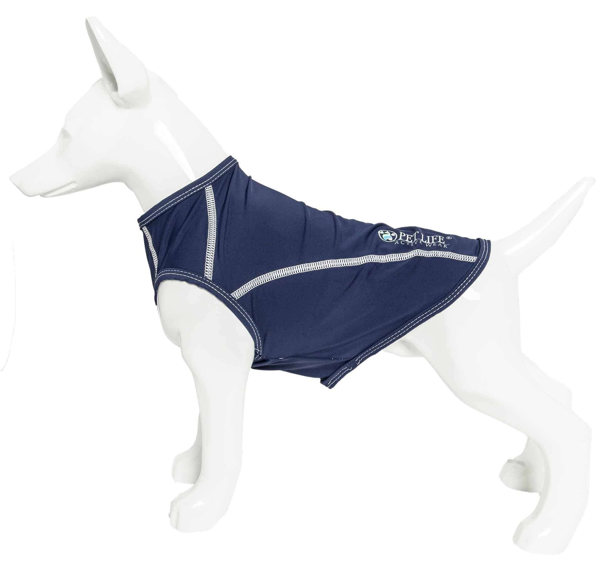 The Pet Life ACTIVE 'Racerbark' Solid Dog Tank Top is comprised of a Lightweight and Stretchy Yoga-like Performance fabric that maximizes Mobility and Comfort. Features 4-Way Stretch Construction that moves better in every direction with a customized fit that's further than next to skin or Fur without the squeeze and won't bunch up. This specially formulated stretchy Micro-Fiber features a higher-grade of Elasticity that won't ever lose it's shape and is Permeable which provides Breathability. This Smooth-to-the-touch fabric features Quick-Drying properties that repels body moisture or sweat and features Anti-Odor technology that assists with odor causing microbes. The Racerbark is also UV Protectant against the suns harmful rays and strategically fitted to help assist in containment of shedded hairs. Design features Dual Reinforned stitching at every seam for added durability with a Pull-Over design for easy on and off access and Reflective-Taping for added night visibility. Machine Washable. This style is part of our Pet Life Activewear Collection. Available in Multiple Sizes and Colors.