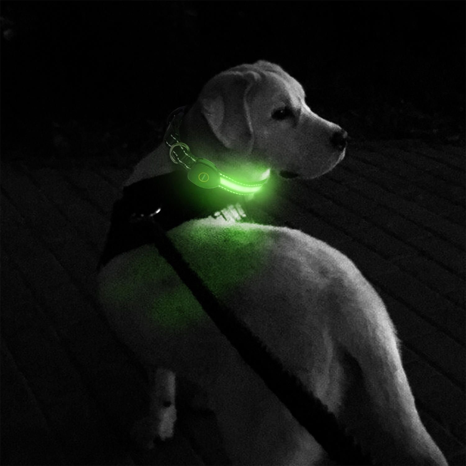 [Fully Adjustable Size]: No worries the size of our lighted dog collar; fits the neck of your dog or not; our light up collars for dogs at night is fully adjustable; and we provide 2 sizes that can easily find which one is fit for your dog [See in fifth picture]