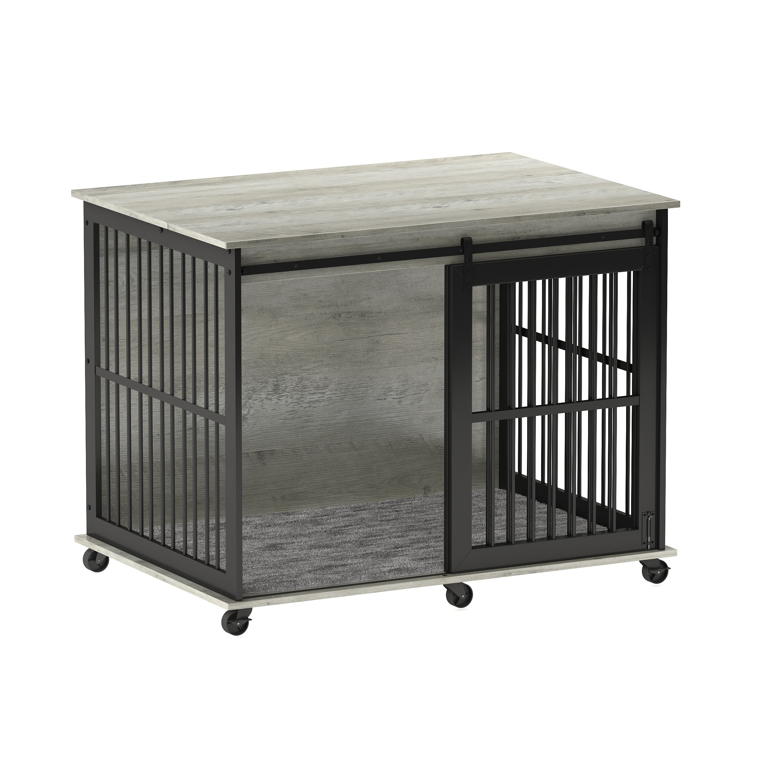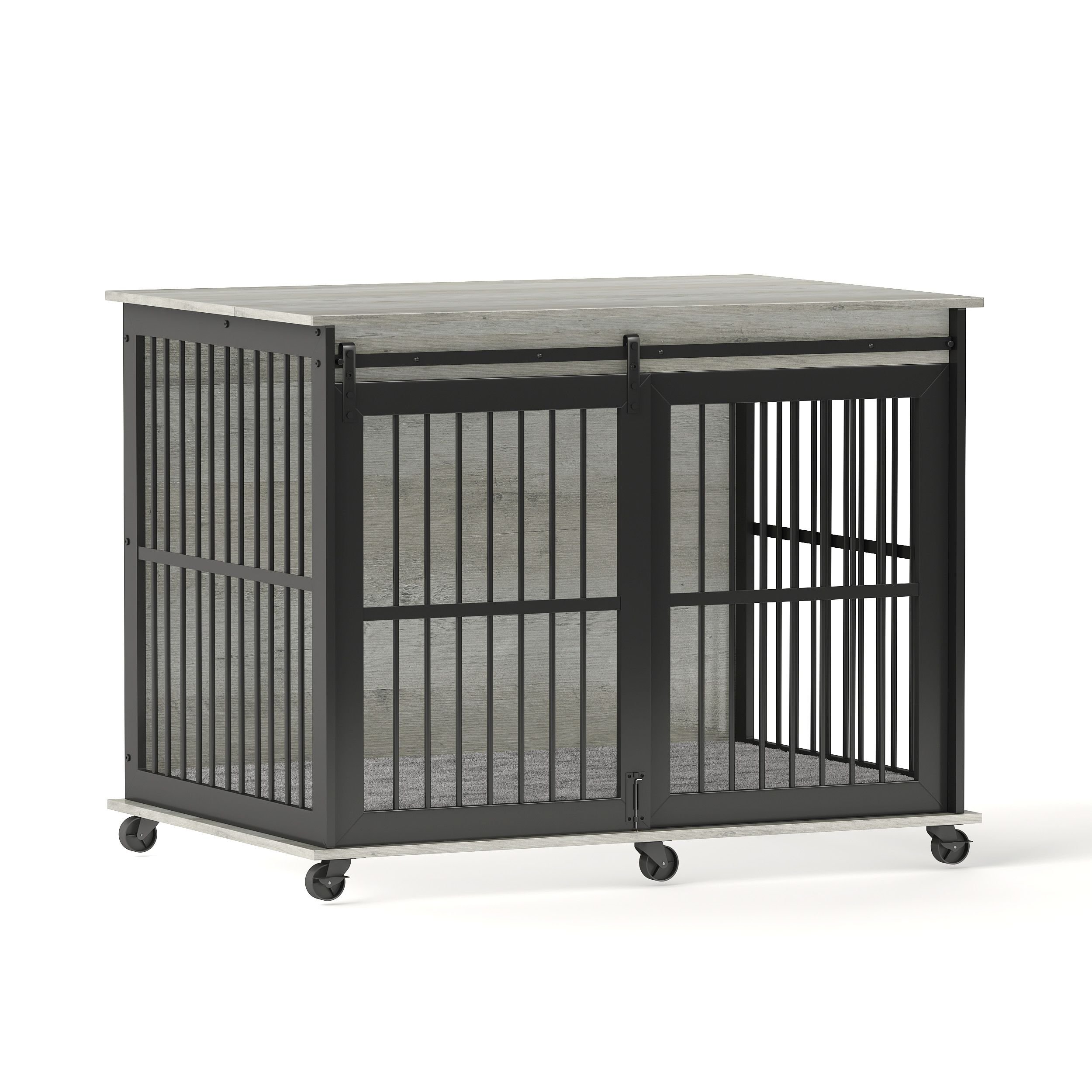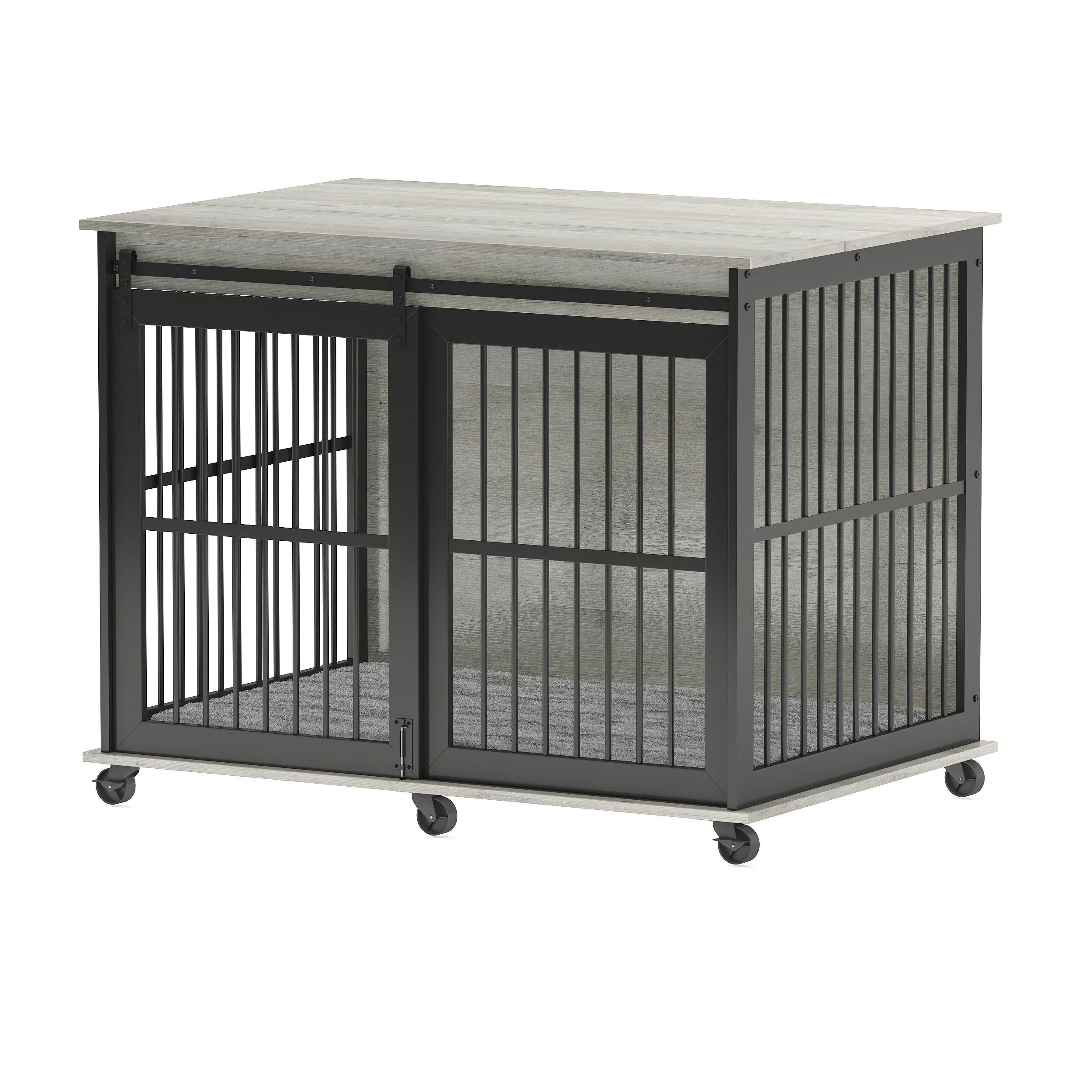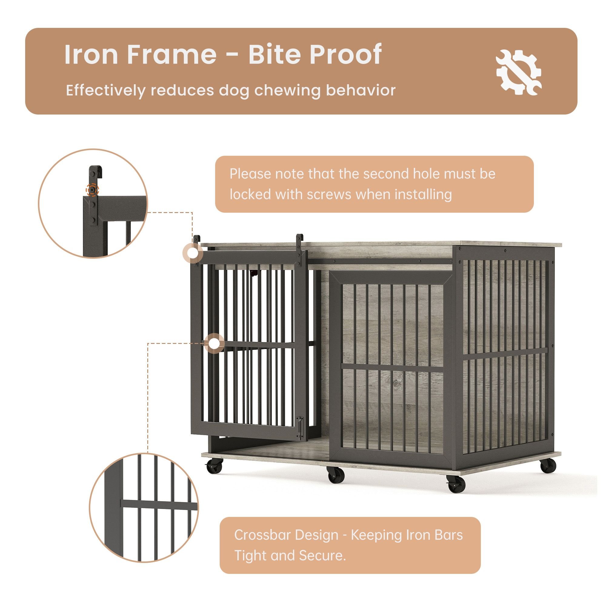Furniture dog crate sliding iron door dog crate with mat. (Rustic Brown,43.7''W x 30''D x 33.7''H).