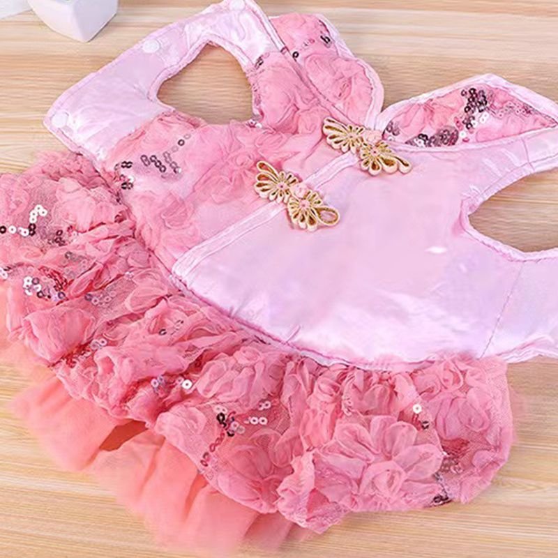 New Year Dog Dress; Festive Pet Dress; Floral Dog Costumes; Pet Clothes For Small Medium Dogs & Cats