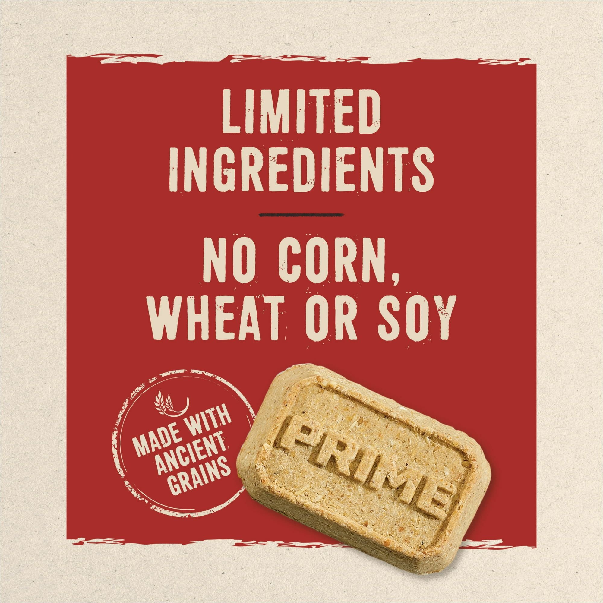 Purina Prime Bars Pasture Fed Bison Treats for Dog, Treat your pal to dog biscuit treats that are natural, crunchy and satisfying with Purina Prime Bars With Pasture-Fed Bison dog treats. We formulate these natural baked dog biscuits with high-quality ingredients, including pasture-fed bison and ancient grains. No corn, wheat or soy go into these Purina dog treats, and neither do artificial colors, flavors or preservatives, creating limited ingredient dog treats that meet your high standards. Plus, we make the adult dog treats with no bone meal or BHA. Full of everything you want for him and nothing you don't, these natural dog biscuits make it easy to feed his taste for adventure.