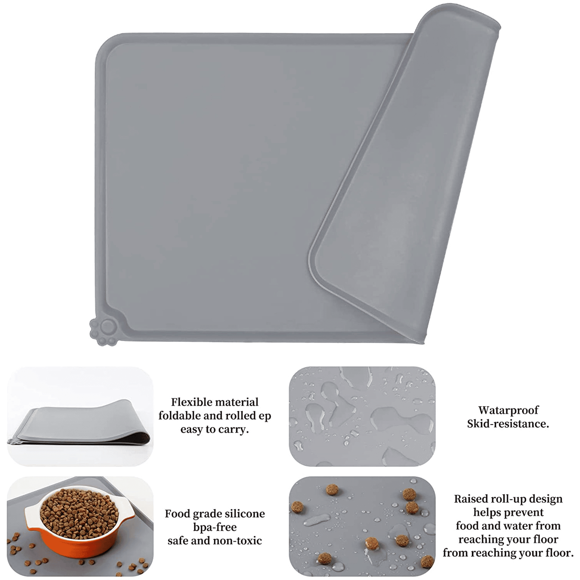 Easy to clean: it is easy to wash or wipe down by hand, simply rinse it in the sink with warm soapy water, wipe it with a cloth, then hang it to dry. Easy to store, great for travel. Just roll up the soft pet placemat.